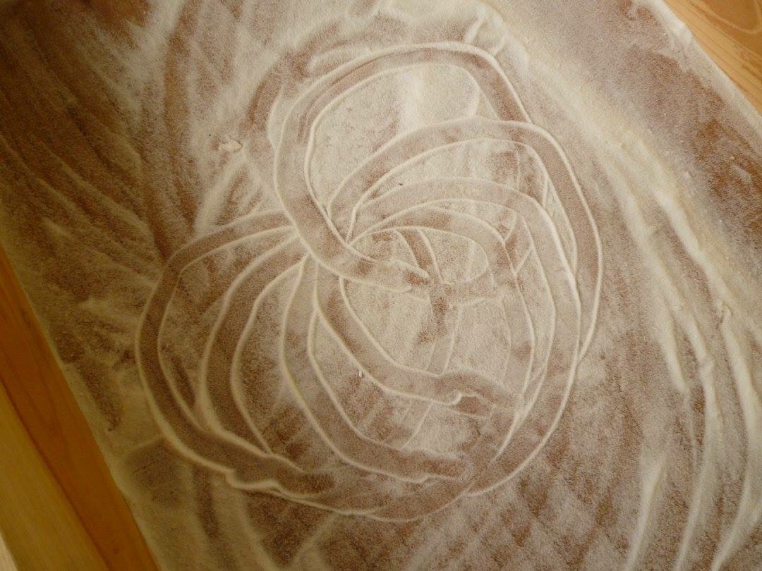 今回で、紐作りの生地を縫いあわせる作業は終わり。