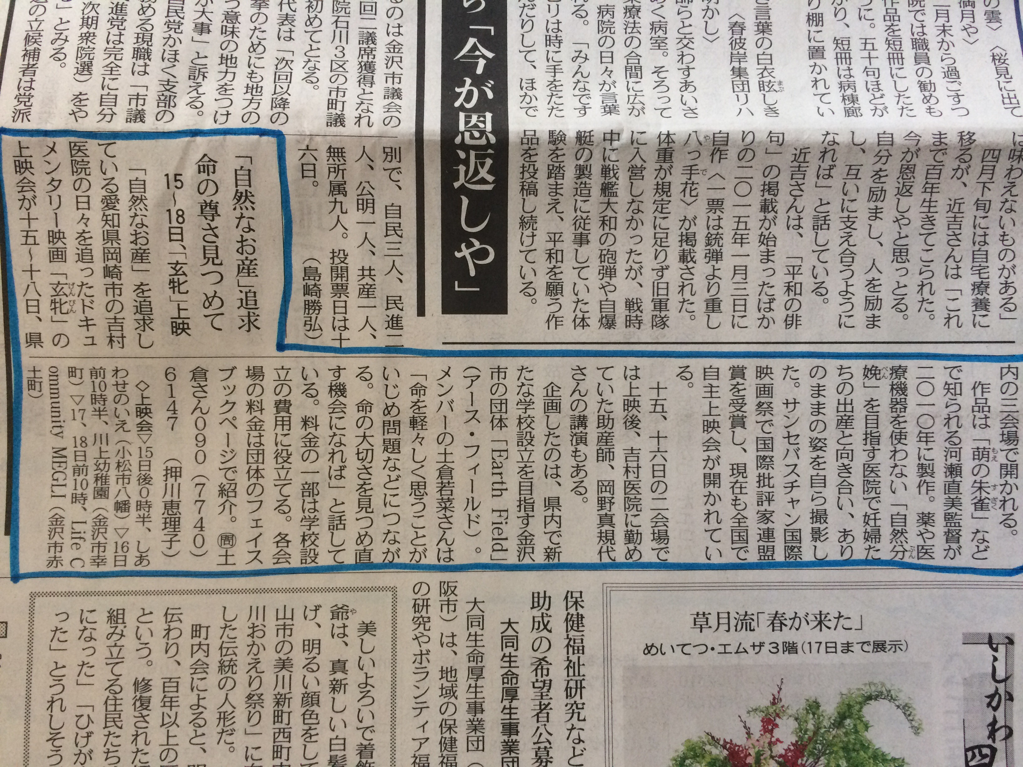 今朝の北陸中日新聞に掲載していただきました。